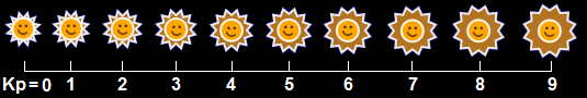 Hint: You can set your own Kp index by tapping the color scale on the wheel. |